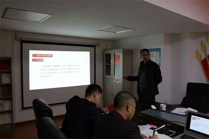 發(fā)布時間:2017-12-26 作者:文/葉瀟圖 義潔/鄒帥 來源:本站原創(chuàng) 審核:羅海蘭12月26日,實業(yè)公司黨支部開展以“聚焦十九大、暢談新變化、助力新發(fā)展”為主題的黨日活動。實業(yè)公司副總經(jīng)理、黨支部組織委員蘭乾雄組織全體黨員同志共同學習十九大重要文件精神及相關(guān)內(nèi)容。