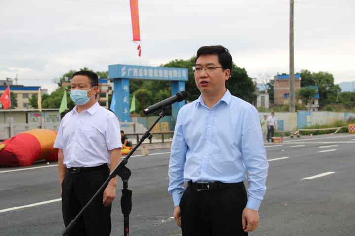 4月29日,永康路橋舉行通車儀式。副市長蔣曉軍,市交通運輸局、國資委、城市管理局、賀州市東融新區(qū)管委、城投集團等有關領導參加通車儀式。副市長蔣曉軍宣布通車。